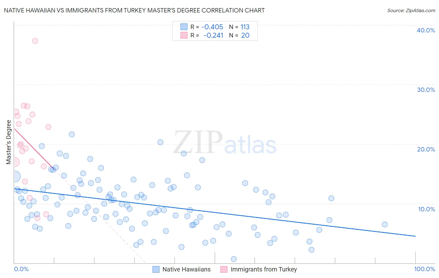 Native Hawaiian vs Immigrants from Turkey Master's Degree