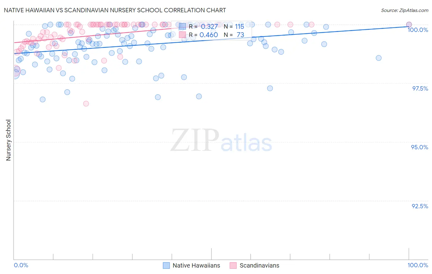 Native Hawaiian vs Scandinavian Nursery School Correlation Chart
