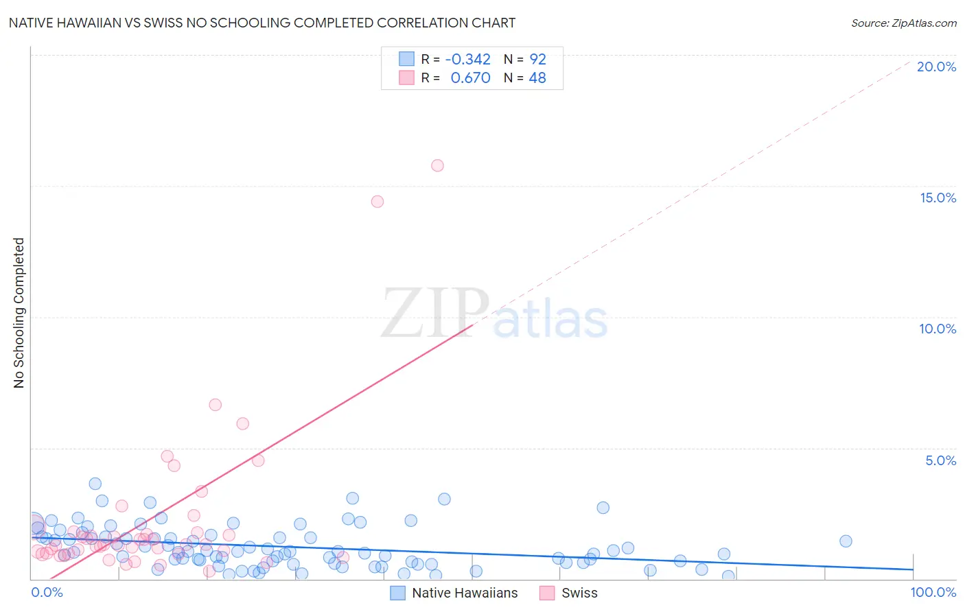 Native Hawaiian vs Swiss No Schooling Completed Correlation Chart
