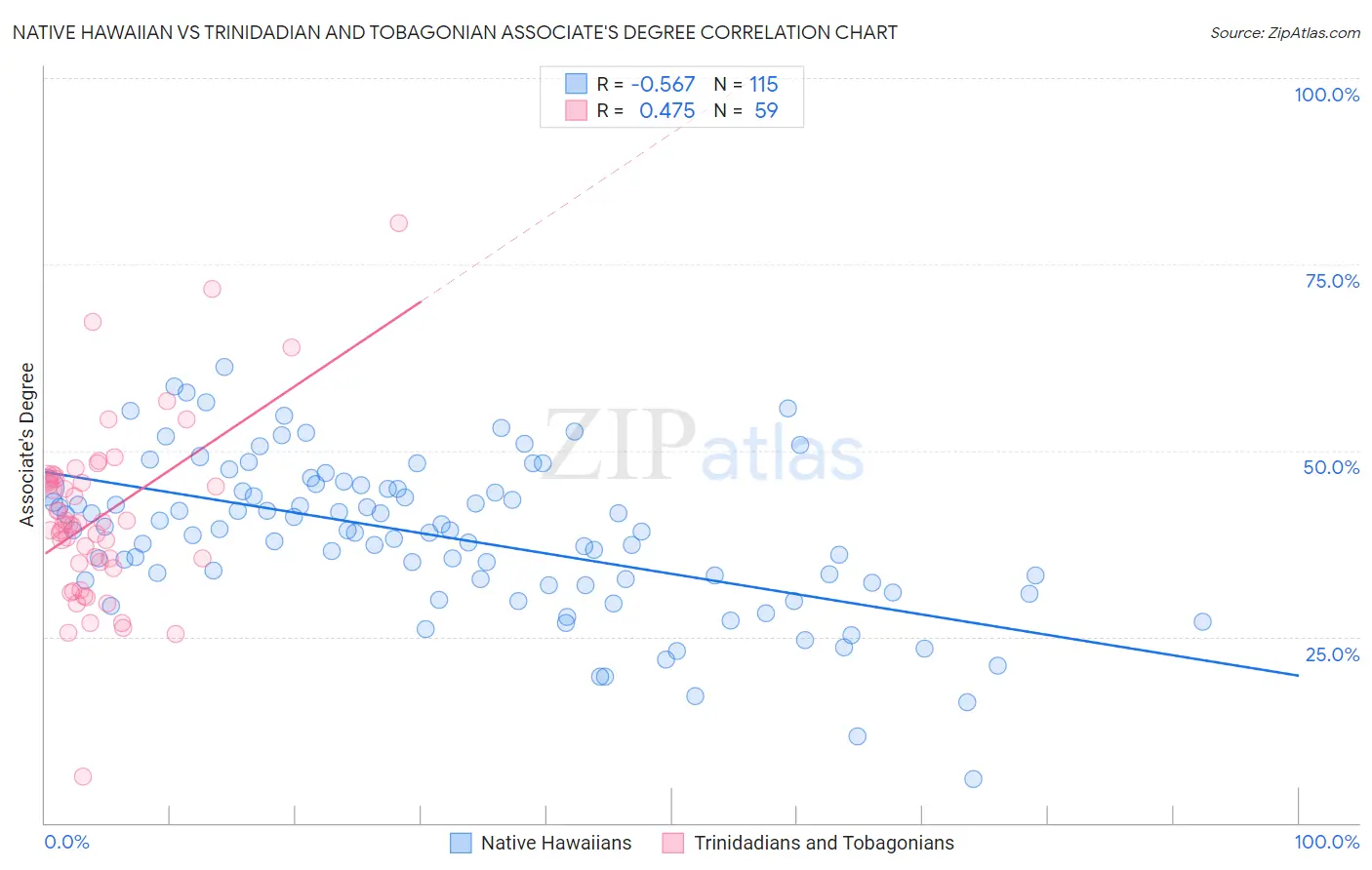 Native Hawaiian vs Trinidadian and Tobagonian Associate's Degree Correlation Chart