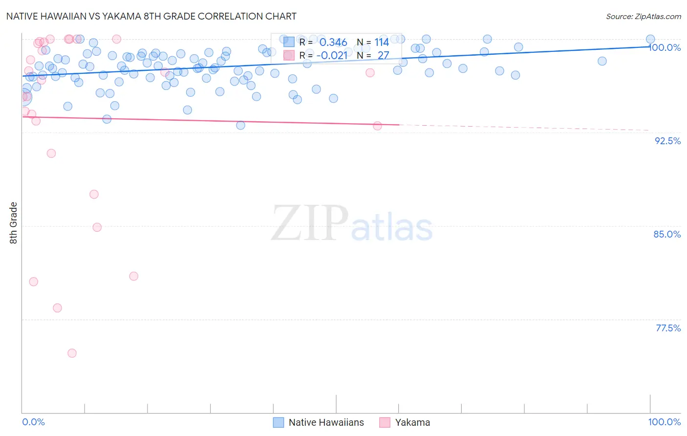 Native Hawaiian vs Yakama 8th Grade Correlation Chart