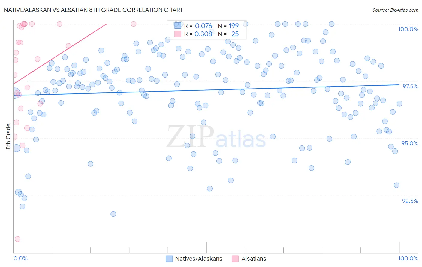 Native/Alaskan vs Alsatian 8th Grade Correlation Chart