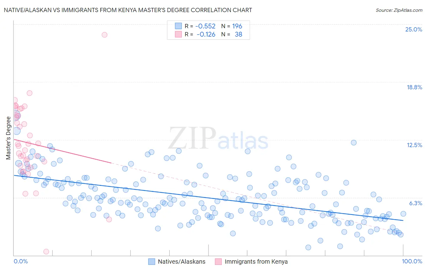 Native/Alaskan vs Immigrants from Kenya Master's Degree Correlation Chart