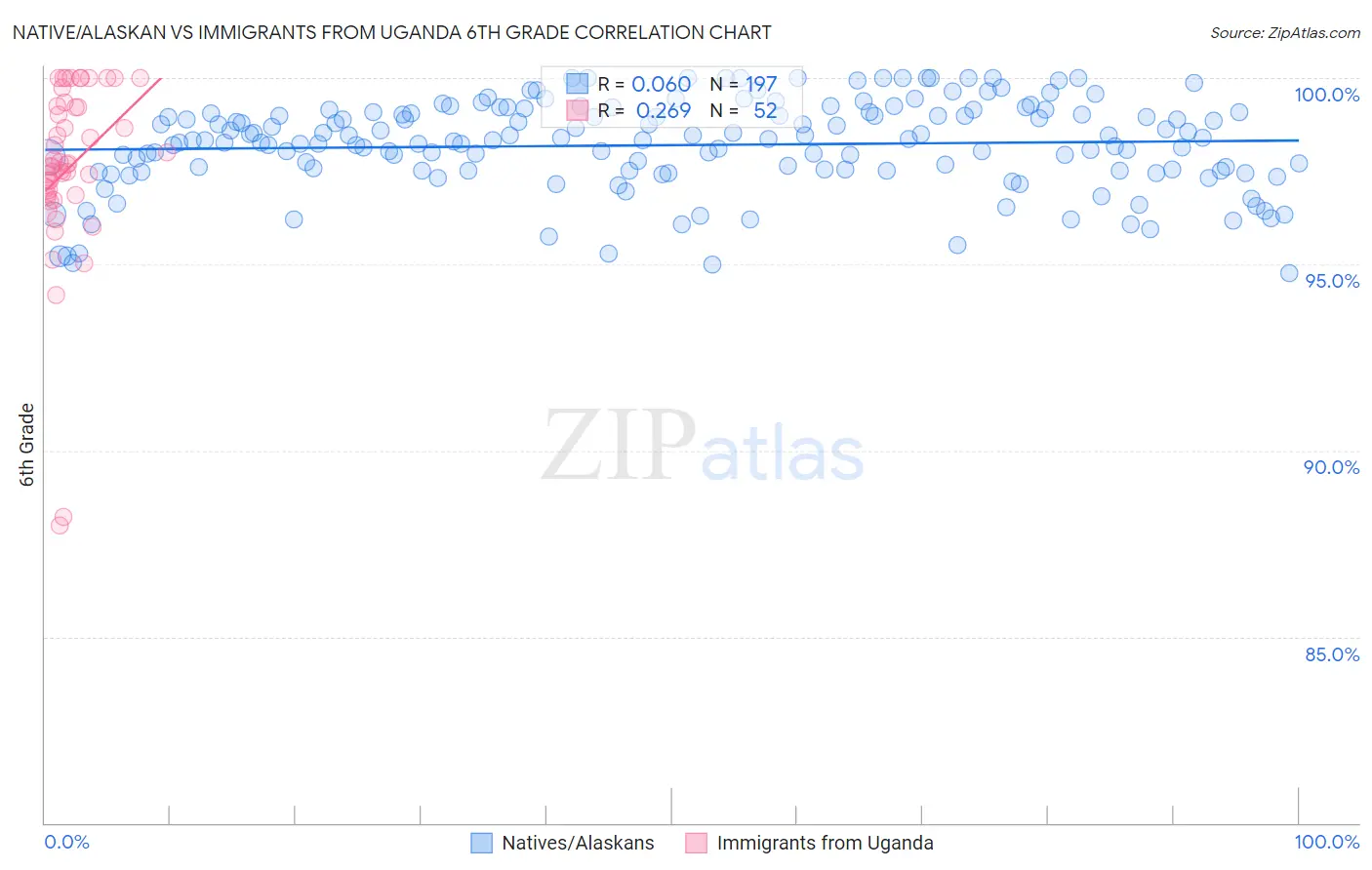 Native/Alaskan vs Immigrants from Uganda 6th Grade Correlation Chart