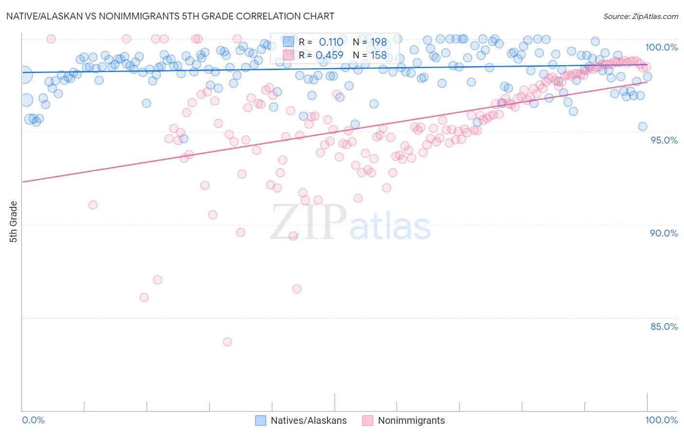 Native/Alaskan vs Nonimmigrants 5th Grade Correlation Chart