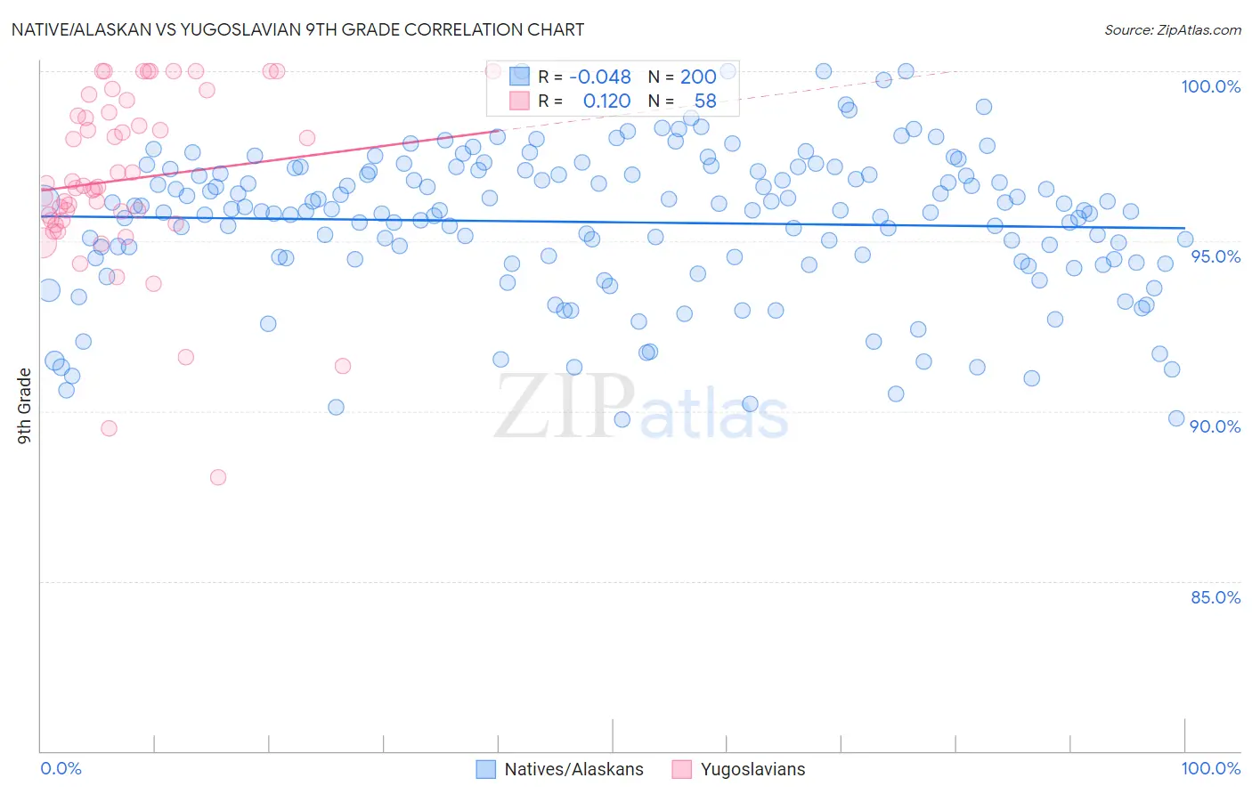 Native/Alaskan vs Yugoslavian 9th Grade Correlation Chart