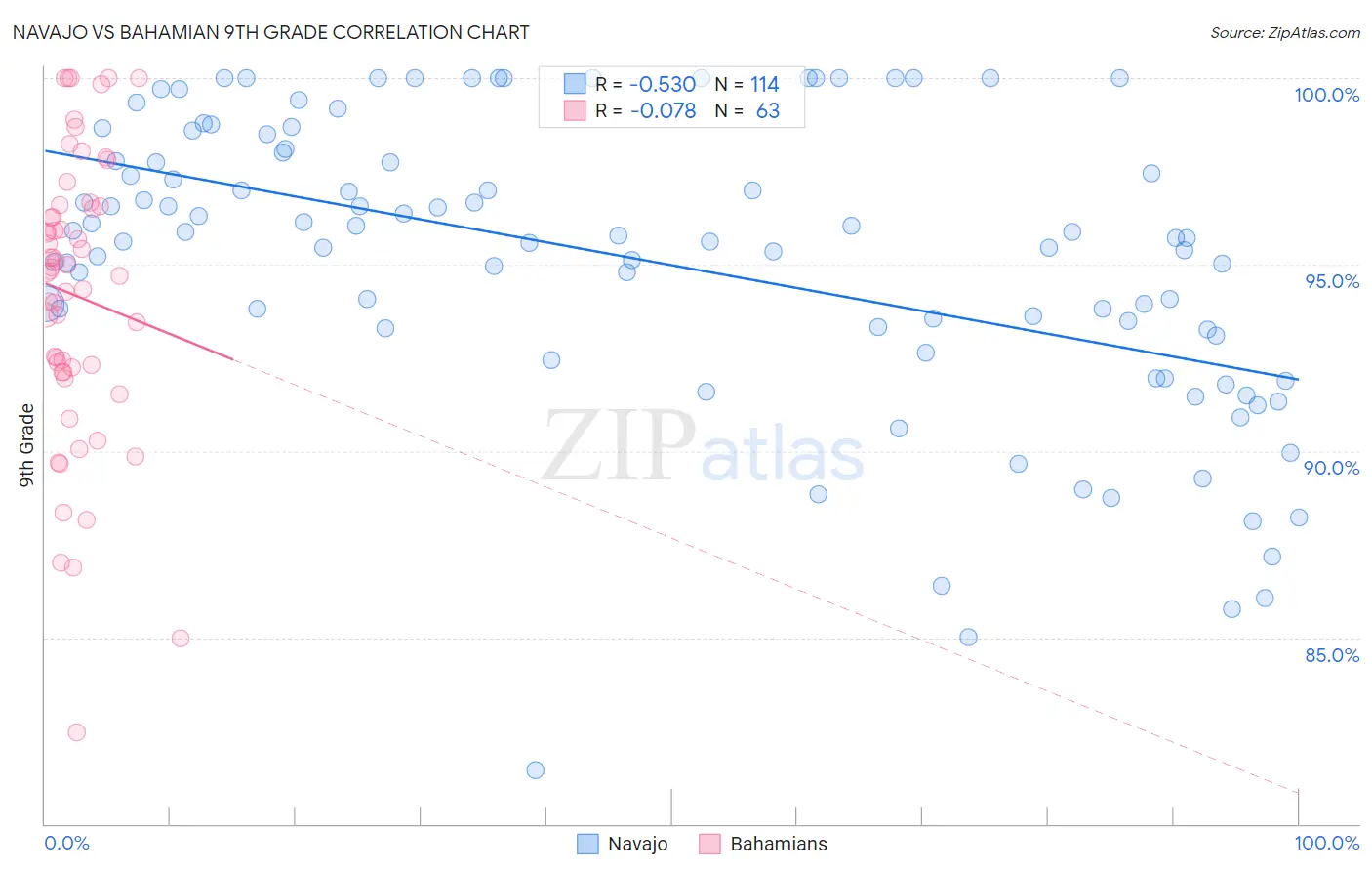 Navajo vs Bahamian 9th Grade Correlation Chart