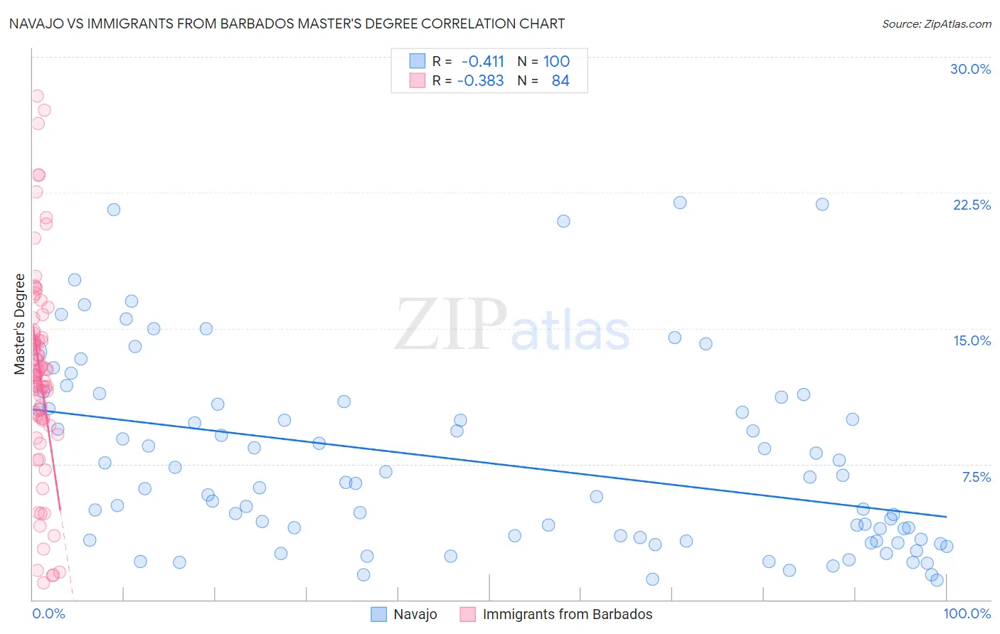 Navajo vs Immigrants from Barbados Master's Degree Correlation Chart