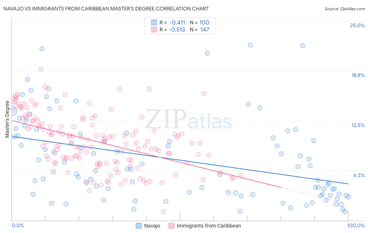 Navajo vs Immigrants from Caribbean Master's Degree Correlation Chart