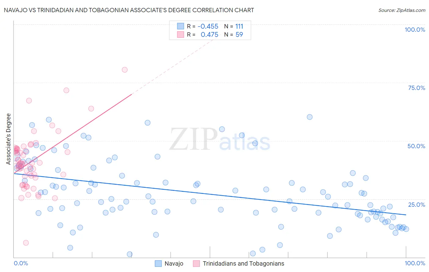 Navajo vs Trinidadian and Tobagonian Associate's Degree Correlation Chart