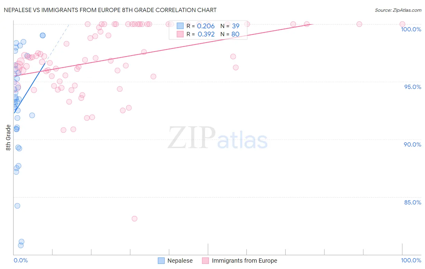 Nepalese vs Immigrants from Europe 8th Grade Correlation Chart