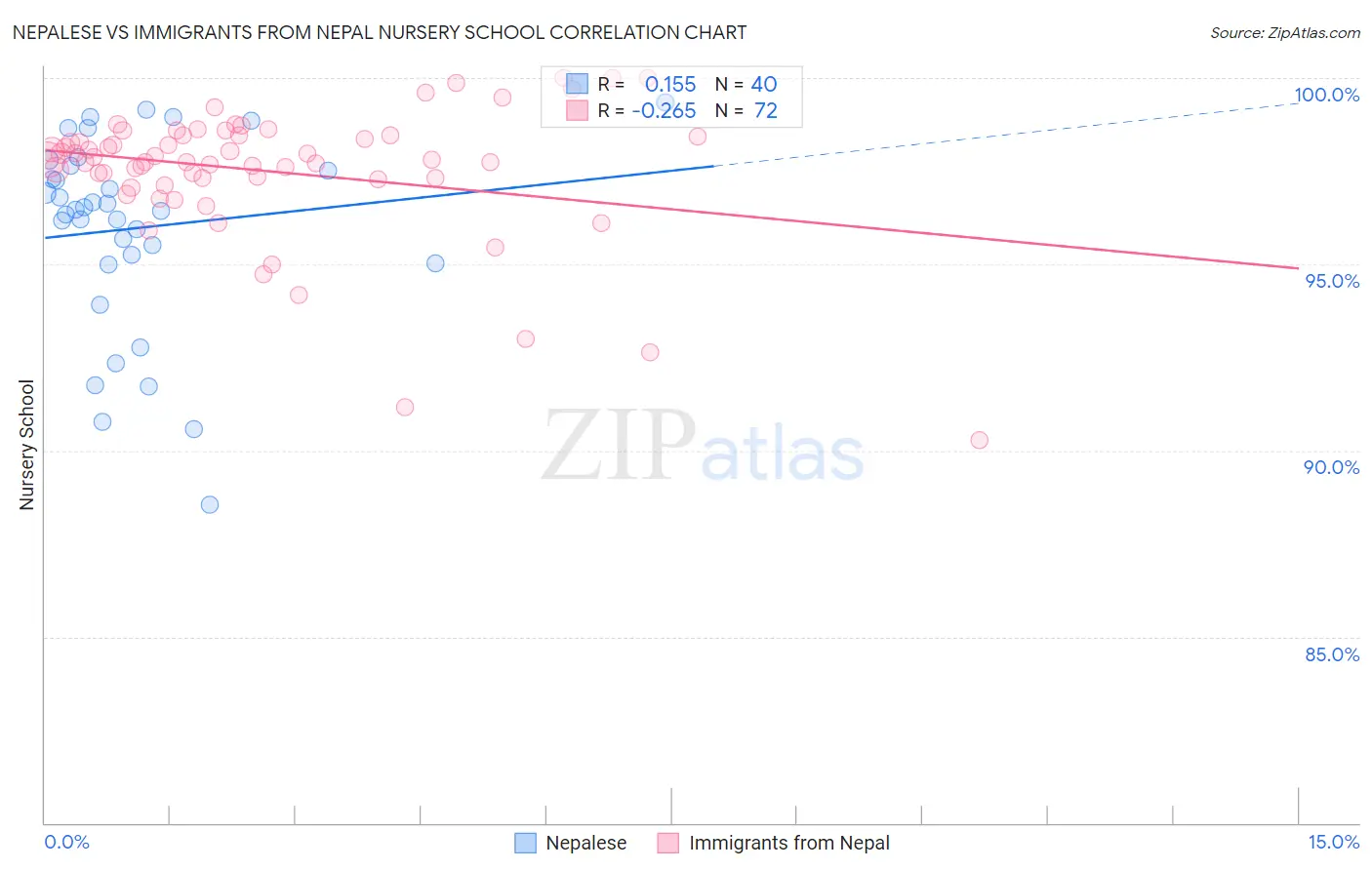 Nepalese vs Immigrants from Nepal Nursery School Correlation Chart