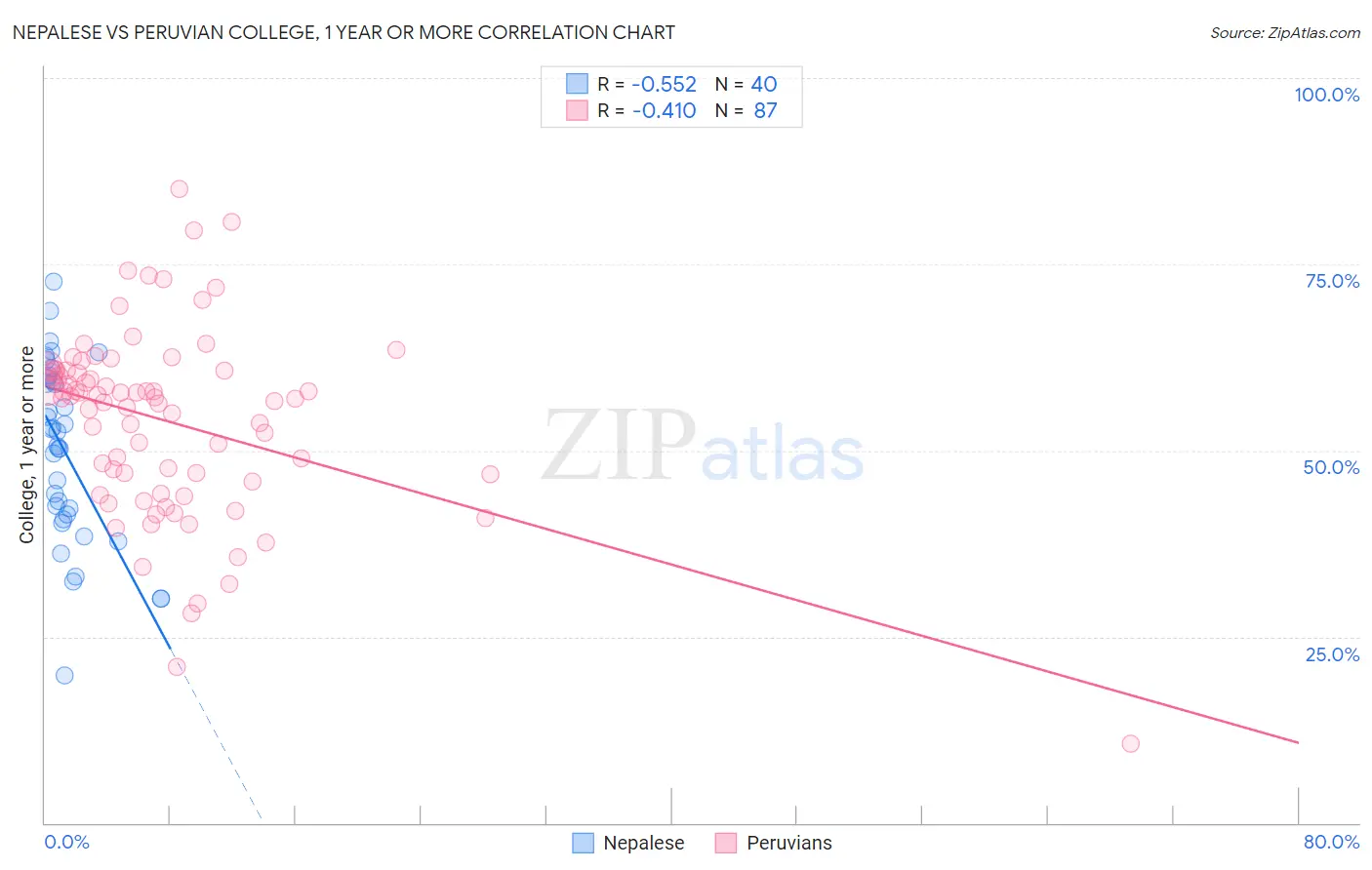 Nepalese vs Peruvian College, 1 year or more Correlation Chart