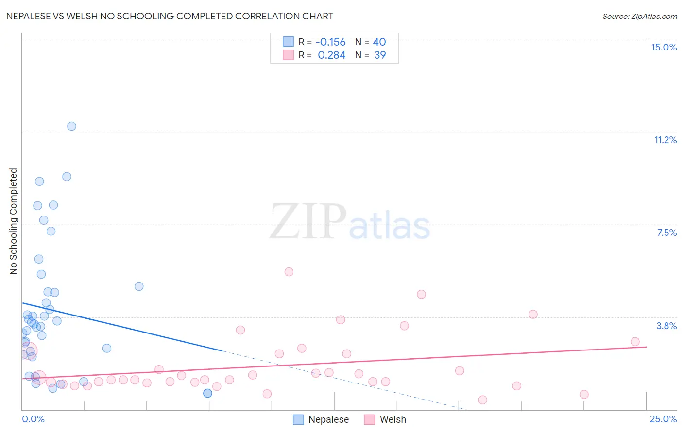 Nepalese vs Welsh No Schooling Completed Correlation Chart
