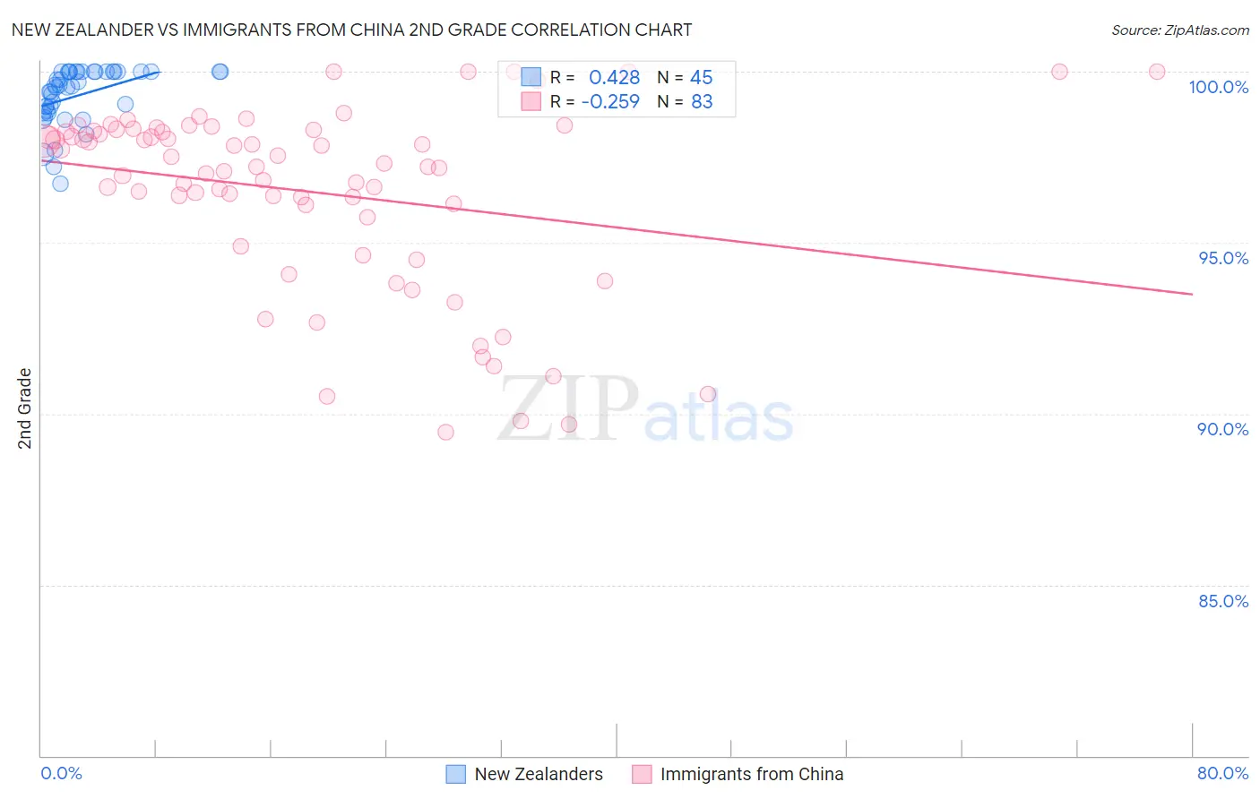New Zealander vs Immigrants from China 2nd Grade Correlation Chart