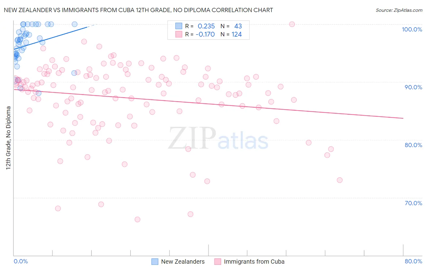 New Zealander vs Immigrants from Cuba 12th Grade, No Diploma Correlation Chart
