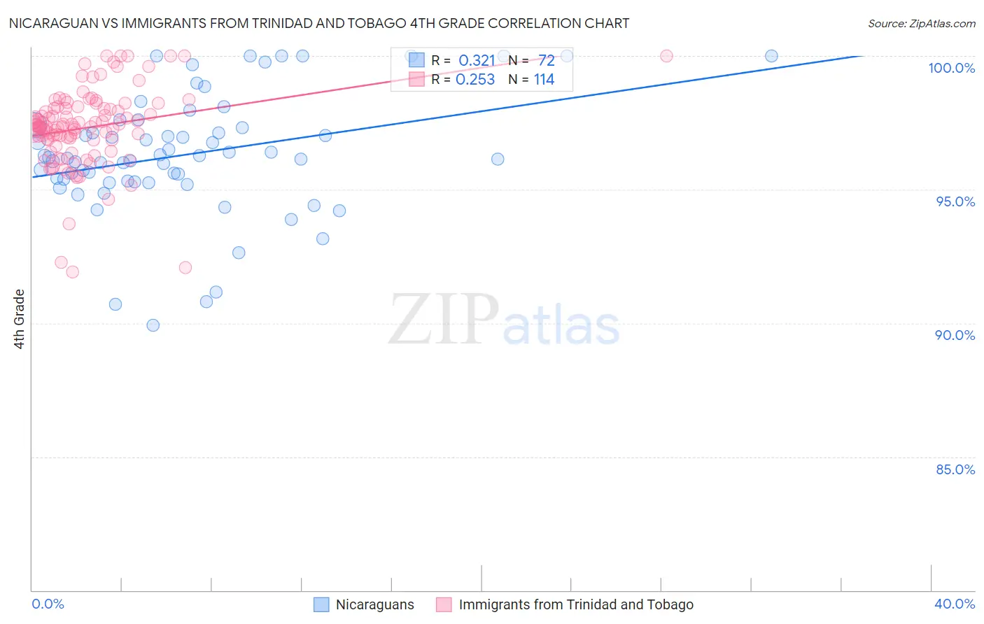 Nicaraguan vs Immigrants from Trinidad and Tobago 4th Grade Correlation Chart