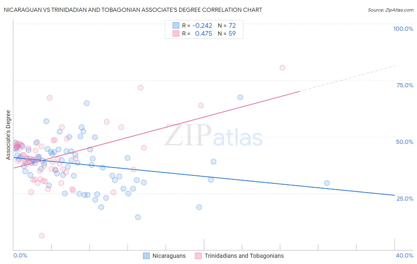 Nicaraguan vs Trinidadian and Tobagonian Associate's Degree Correlation Chart