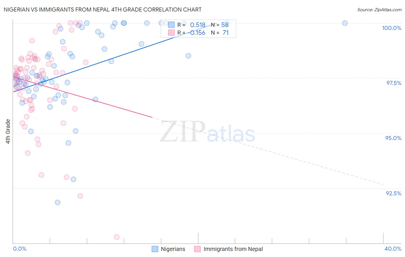 Nigerian vs Immigrants from Nepal 4th Grade Correlation Chart