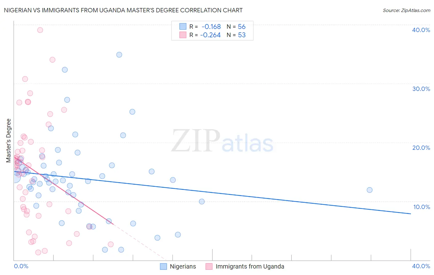 Nigerian vs Immigrants from Uganda Master's Degree Correlation Chart