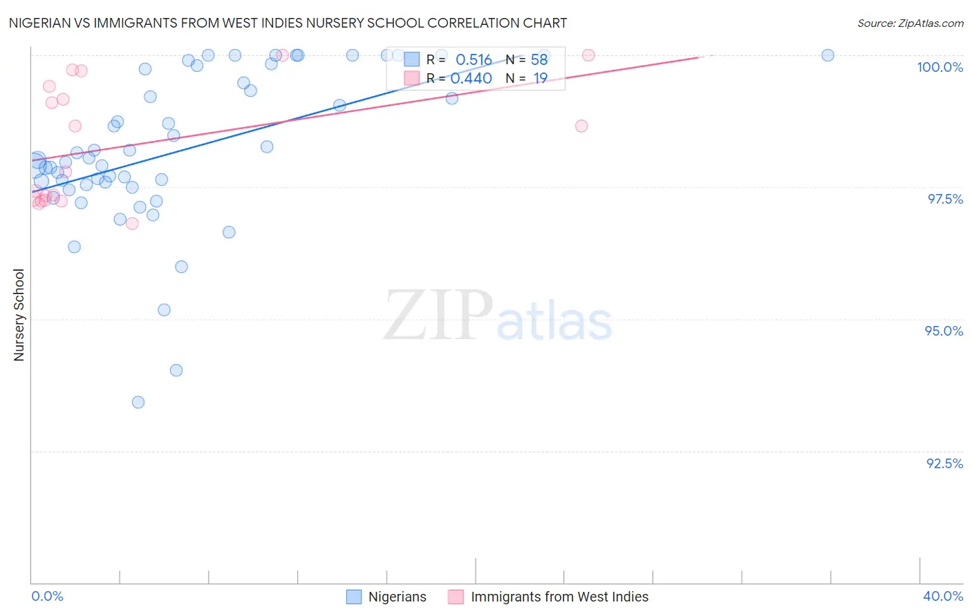 Nigerian vs Immigrants from West Indies Nursery School Correlation Chart