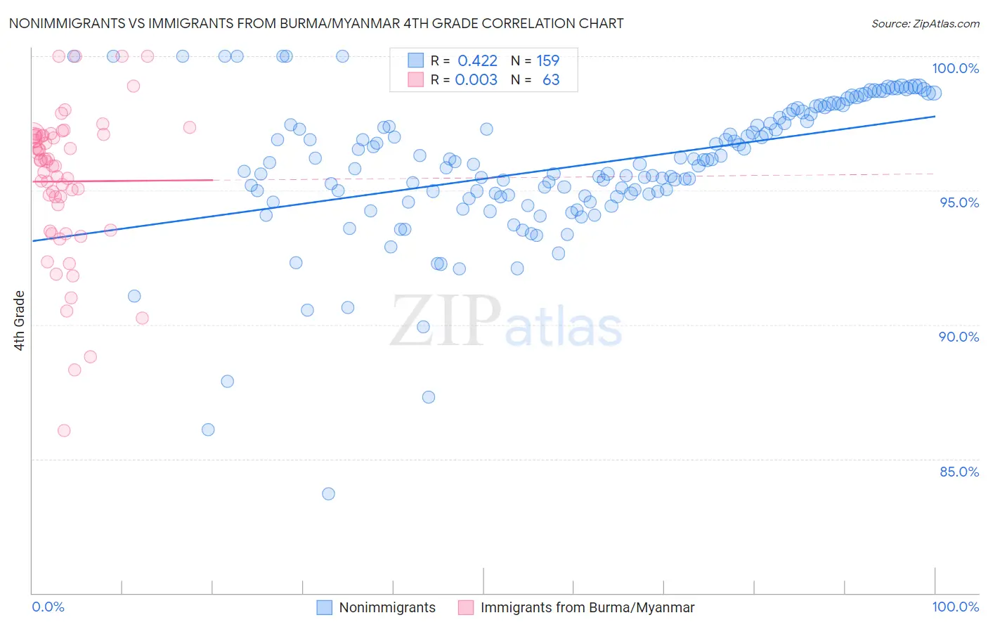 Nonimmigrants vs Immigrants from Burma/Myanmar 4th Grade Correlation Chart