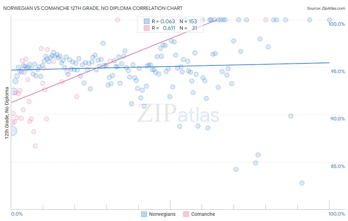 Norwegian vs Comanche 12th Grade, No Diploma Correlation Chart