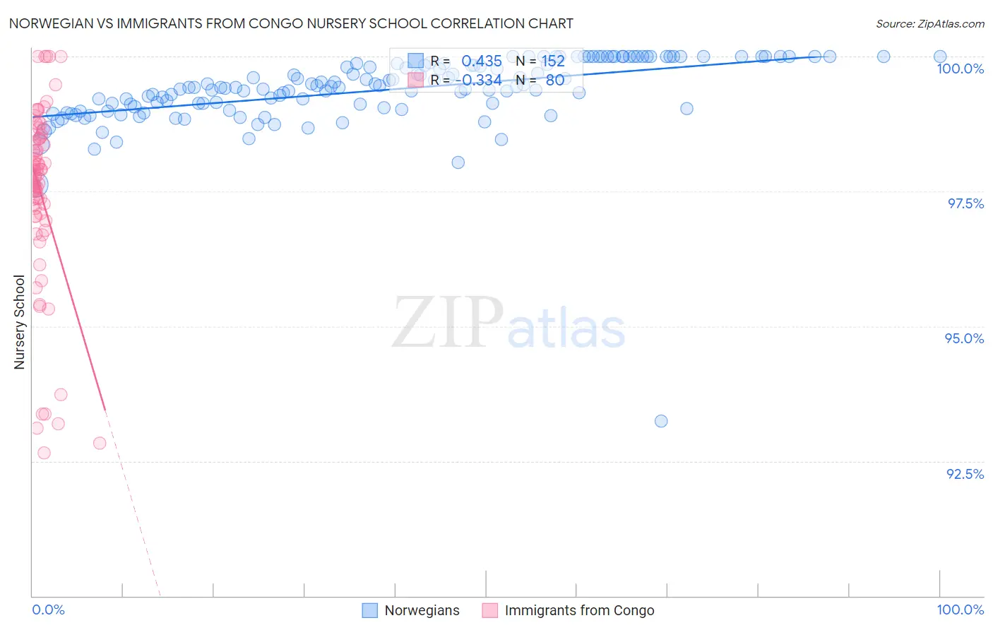 Norwegian vs Immigrants from Congo Nursery School Correlation Chart