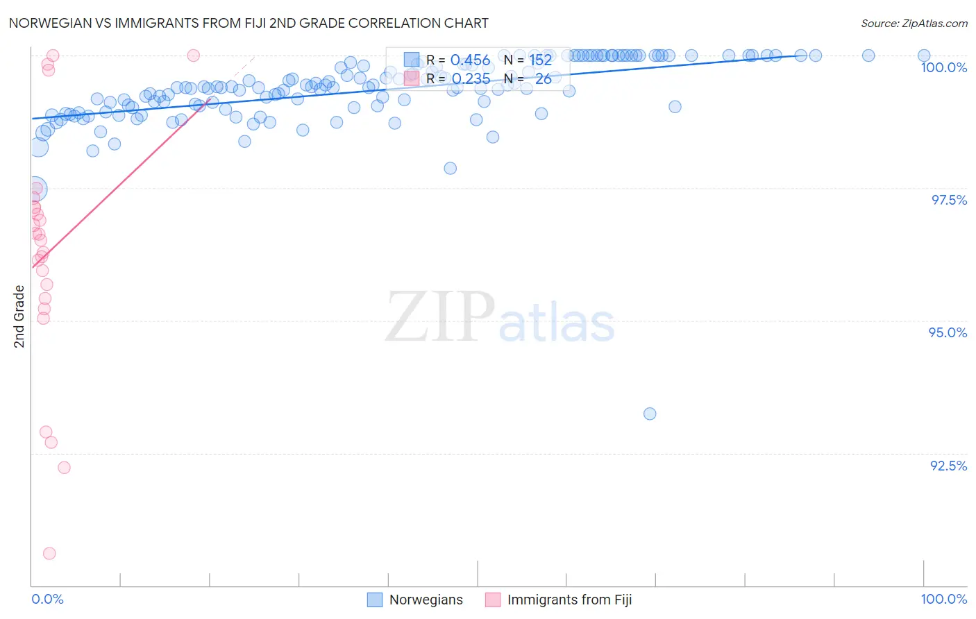 Norwegian vs Immigrants from Fiji 2nd Grade Correlation Chart