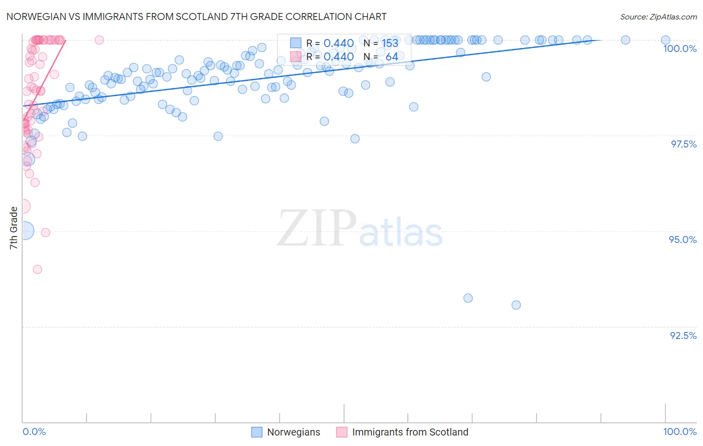 Norwegian vs Immigrants from Scotland 7th Grade Correlation Chart