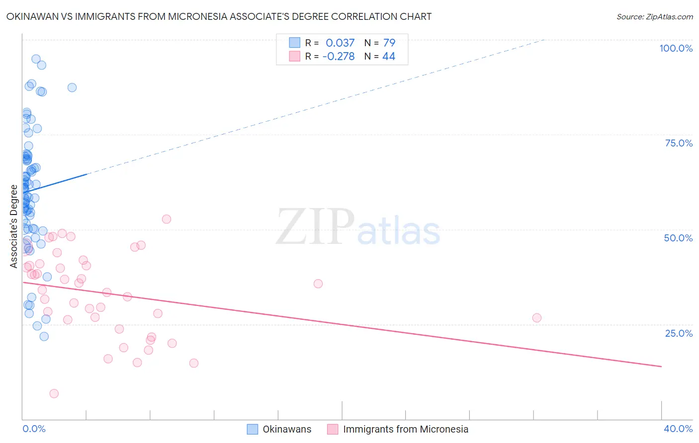 Okinawan vs Immigrants from Micronesia Associate's Degree Correlation Chart