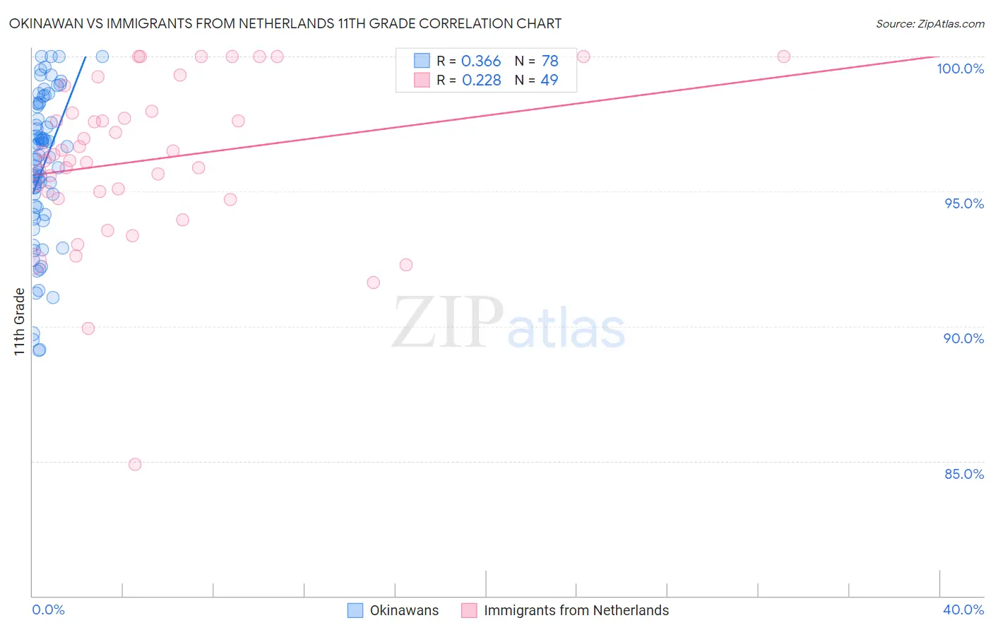 Okinawan vs Immigrants from Netherlands 11th Grade Correlation Chart