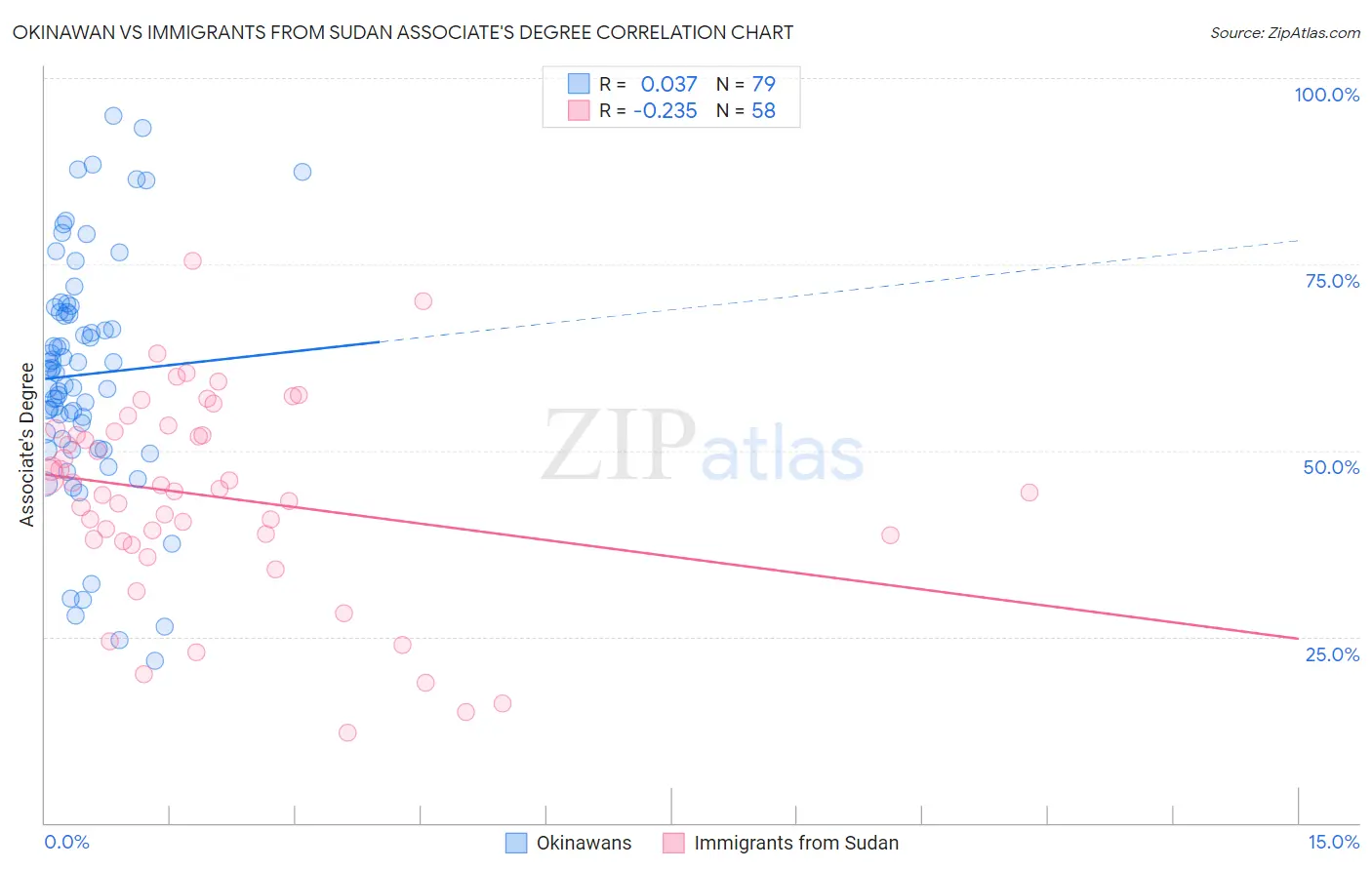 Okinawan vs Immigrants from Sudan Associate's Degree Correlation Chart
