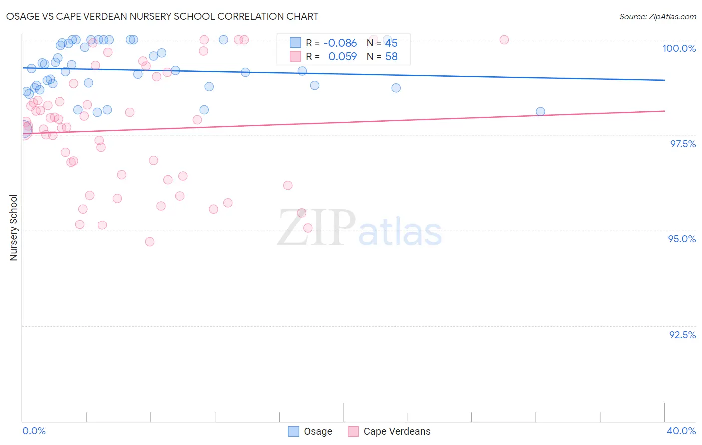 Osage vs Cape Verdean Nursery School Correlation Chart