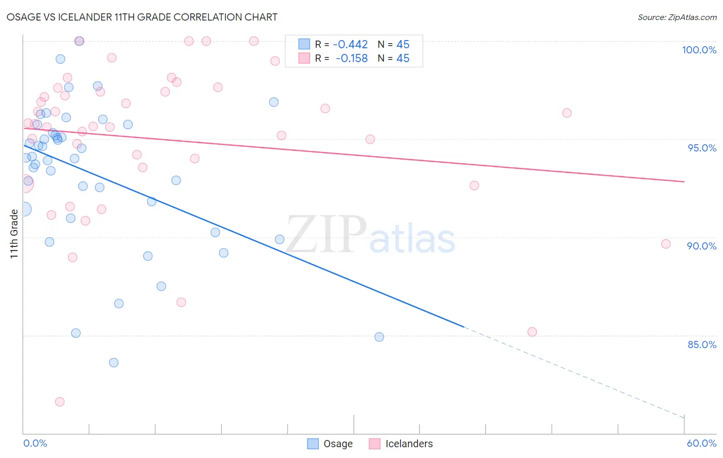 Osage vs Icelander 11th Grade Correlation Chart