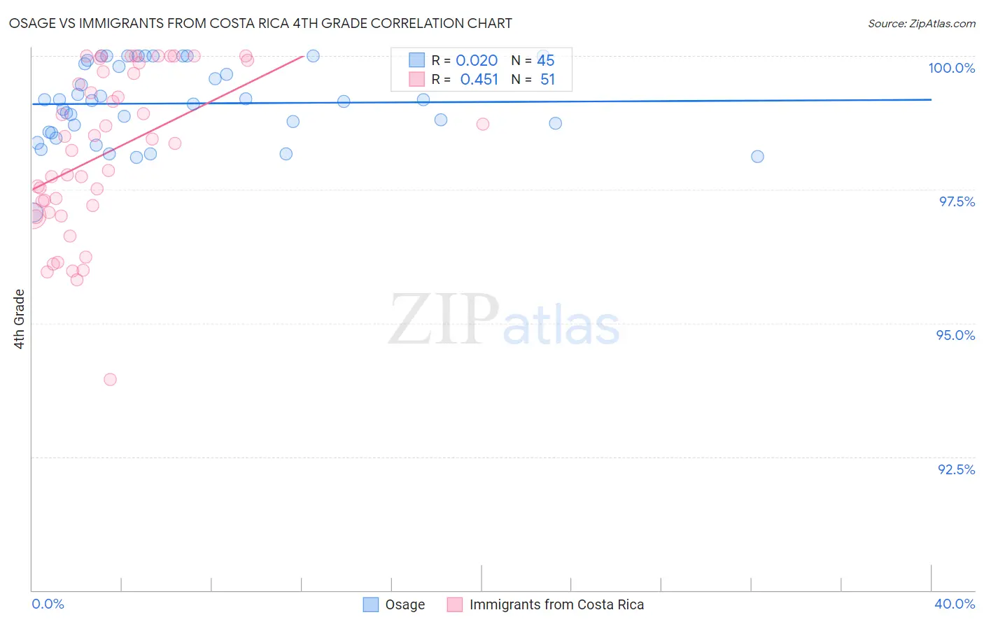 Osage vs Immigrants from Costa Rica 4th Grade Correlation Chart