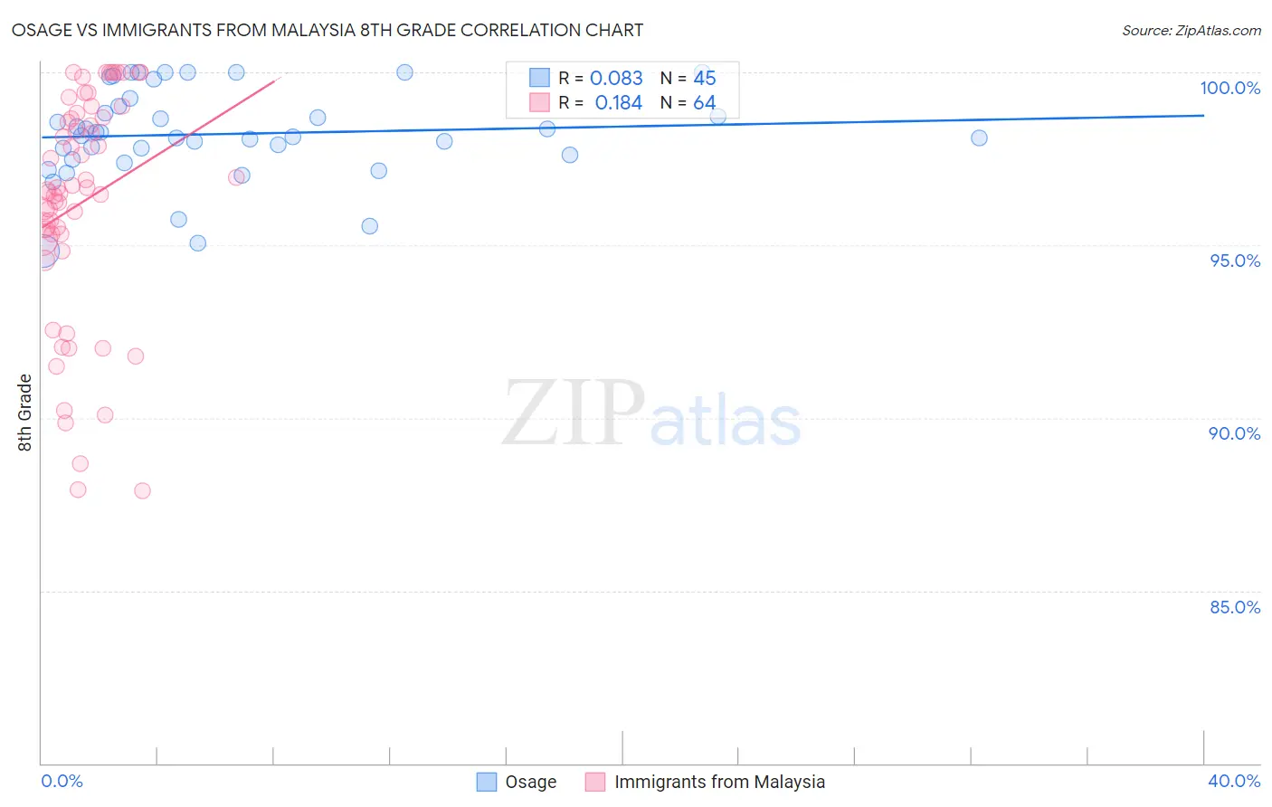 Osage vs Immigrants from Malaysia 8th Grade Correlation Chart