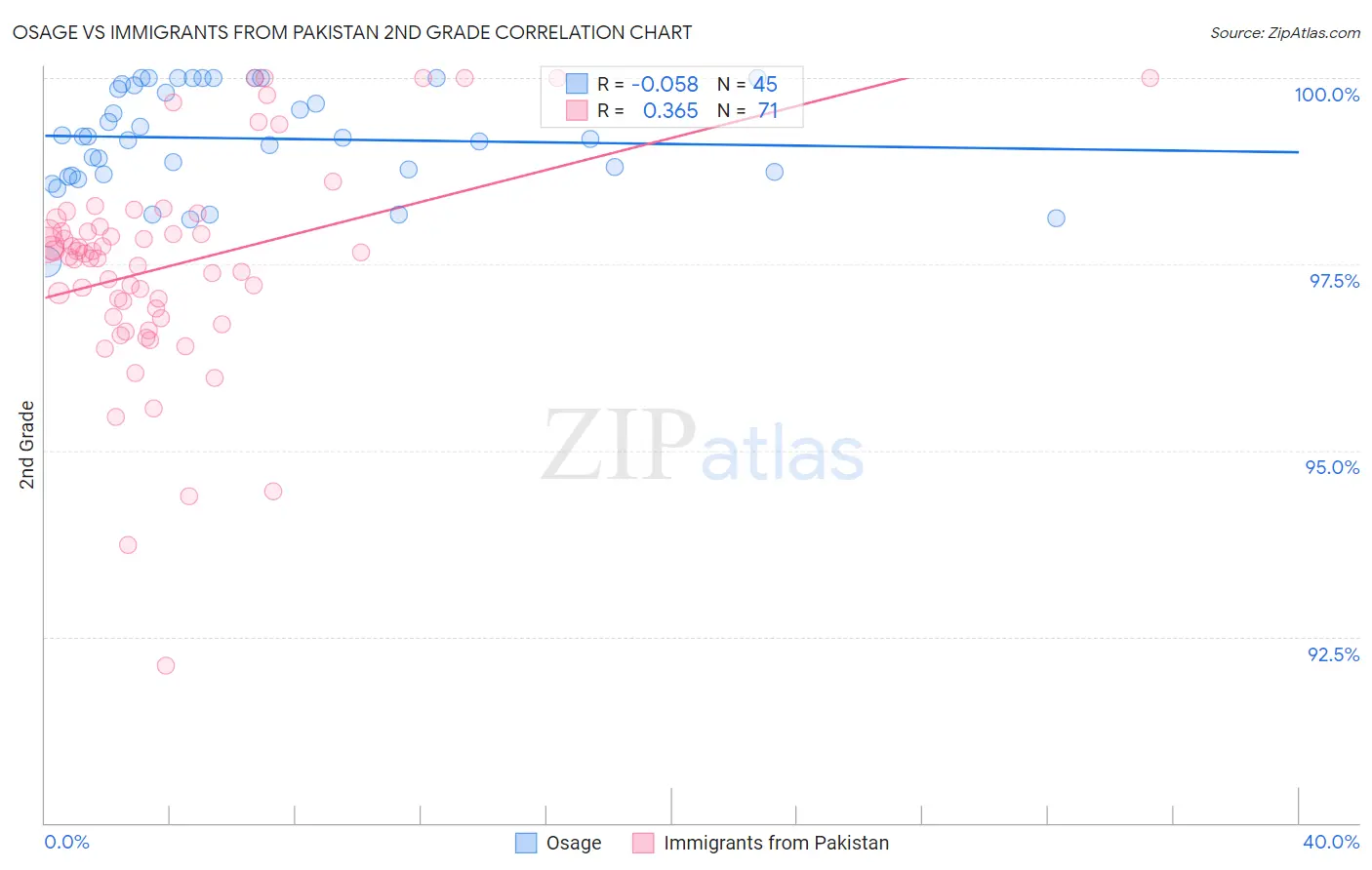 Osage vs Immigrants from Pakistan 2nd Grade Correlation Chart