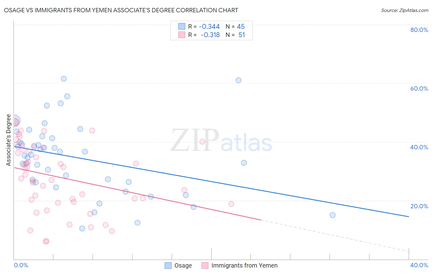 Osage vs Immigrants from Yemen Associate's Degree Correlation Chart