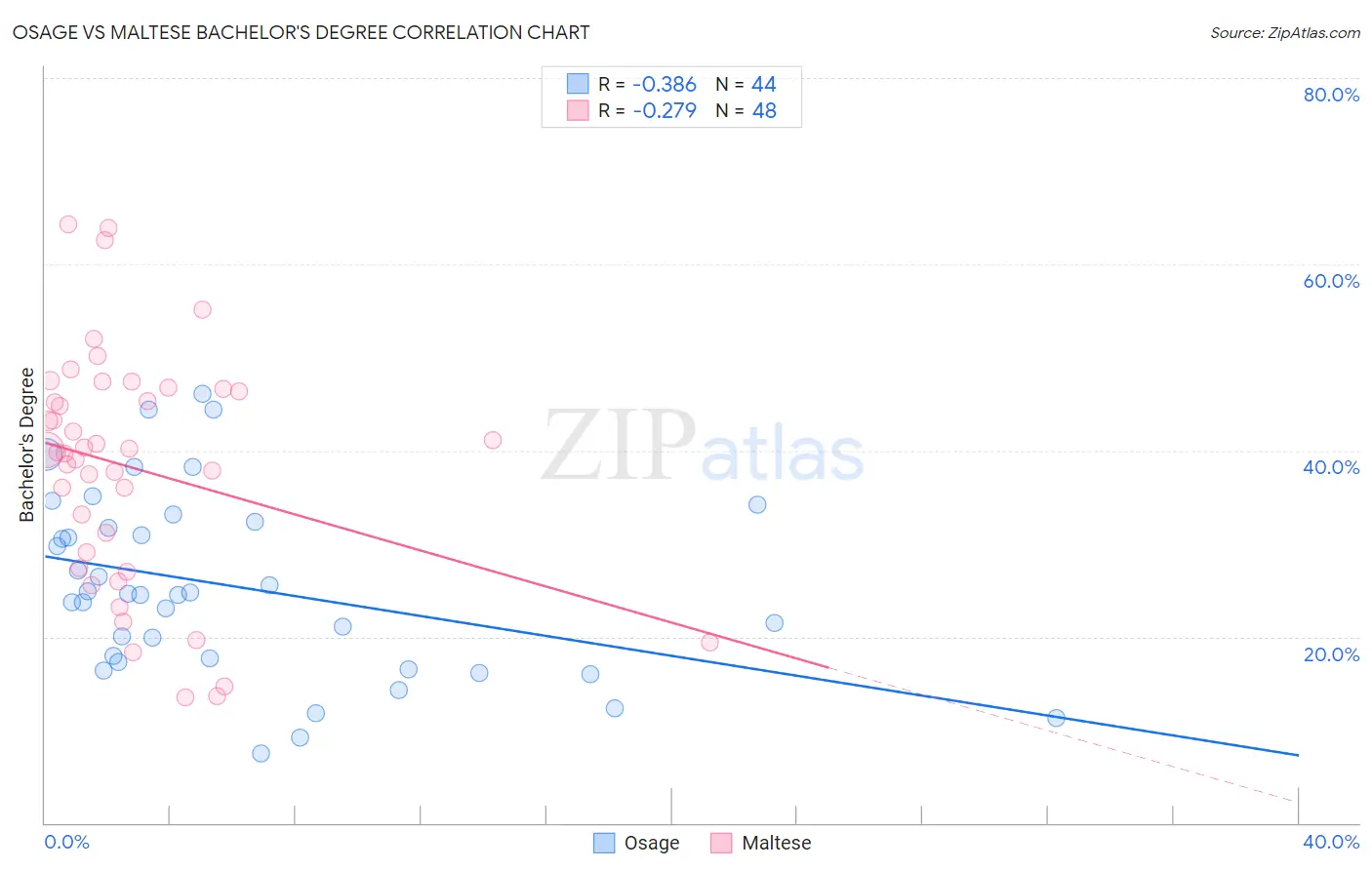 Osage vs Maltese Bachelor's Degree Correlation Chart