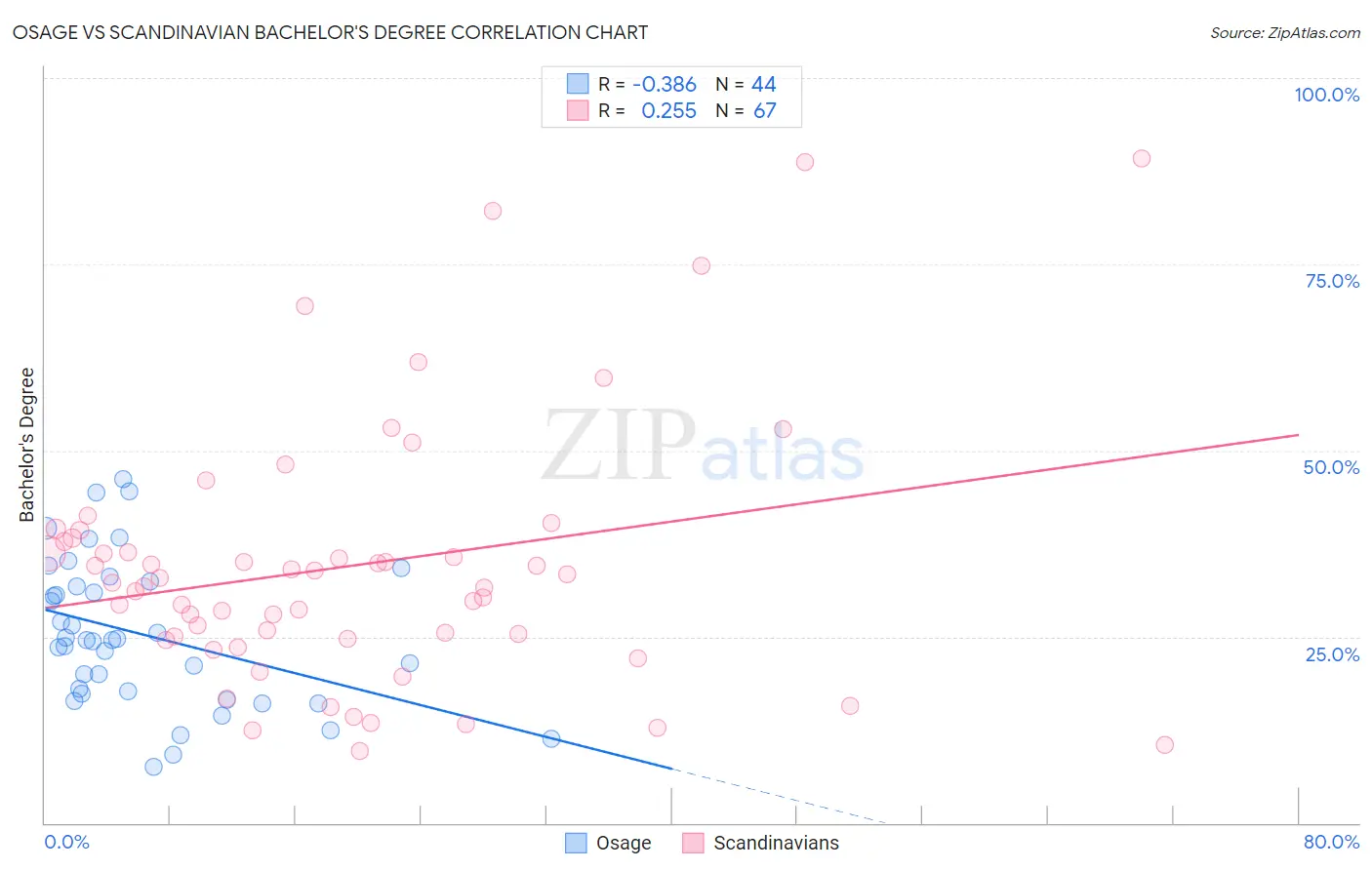 Osage vs Scandinavian Bachelor's Degree Correlation Chart