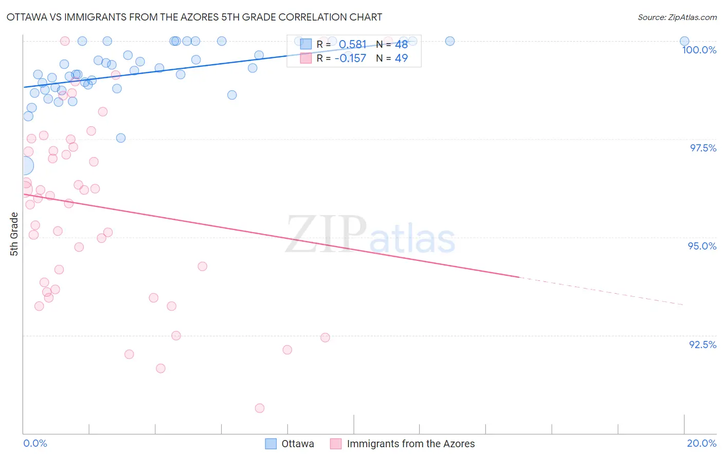 Ottawa vs Immigrants from the Azores 5th Grade Correlation Chart