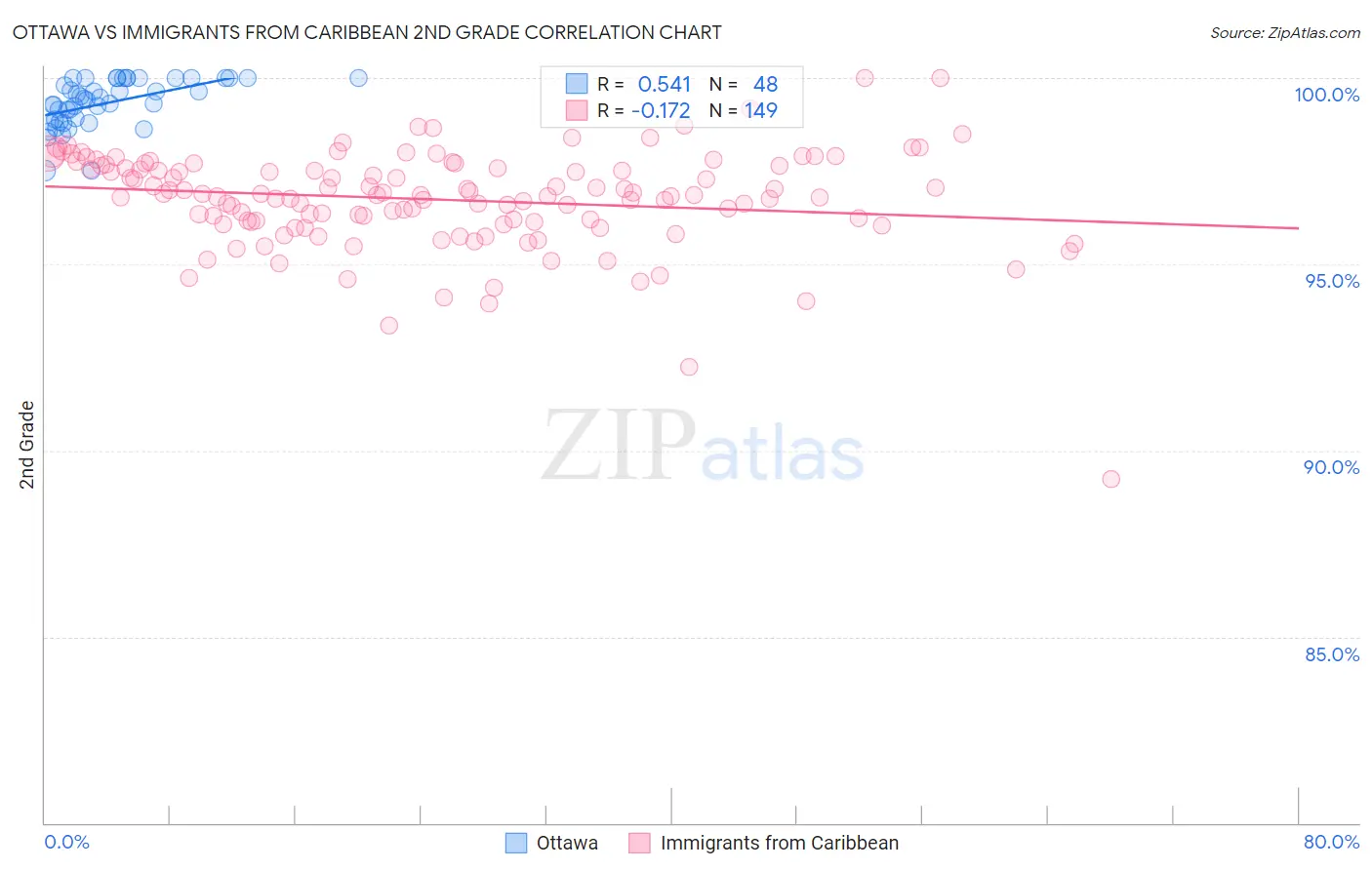 Ottawa vs Immigrants from Caribbean 2nd Grade Correlation Chart