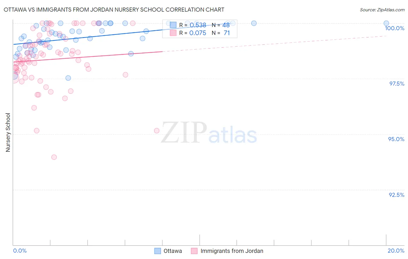 Ottawa vs Immigrants from Jordan Nursery School Correlation Chart