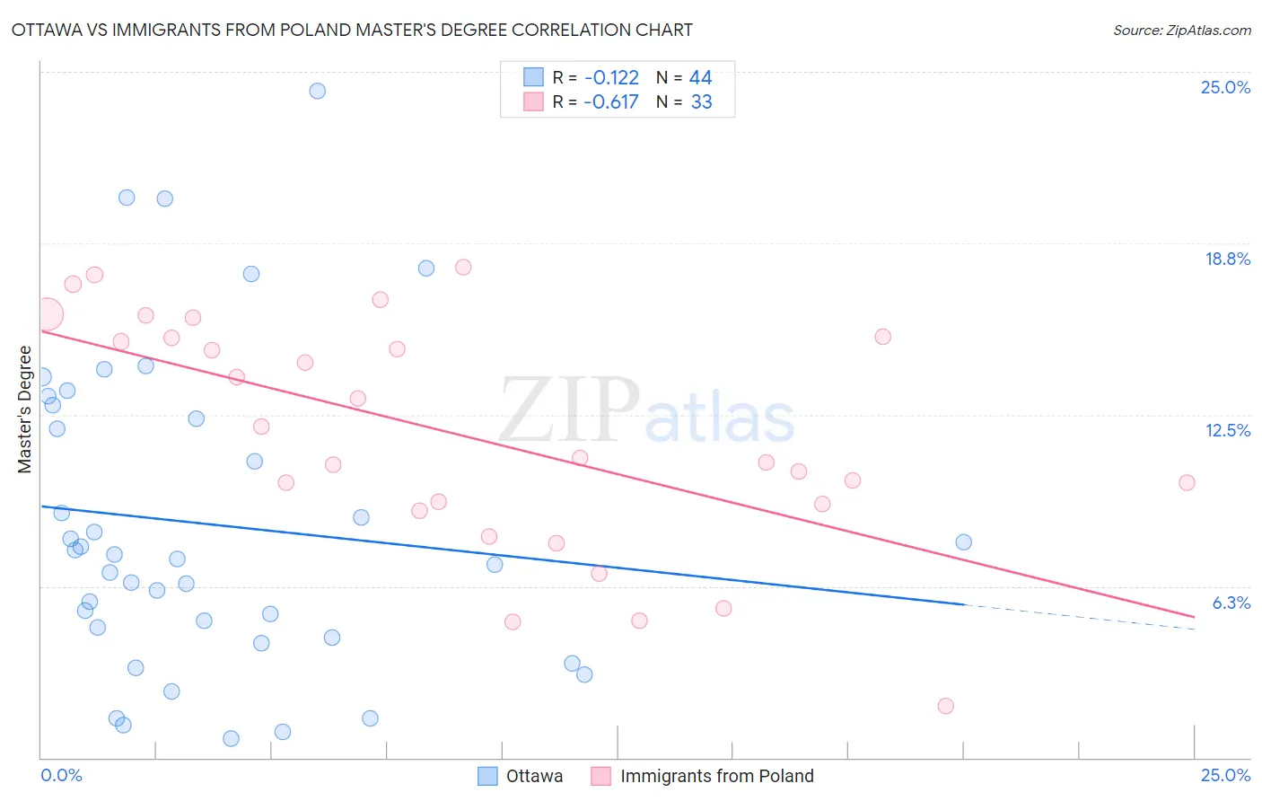 Ottawa vs Immigrants from Poland Master's Degree Correlation Chart