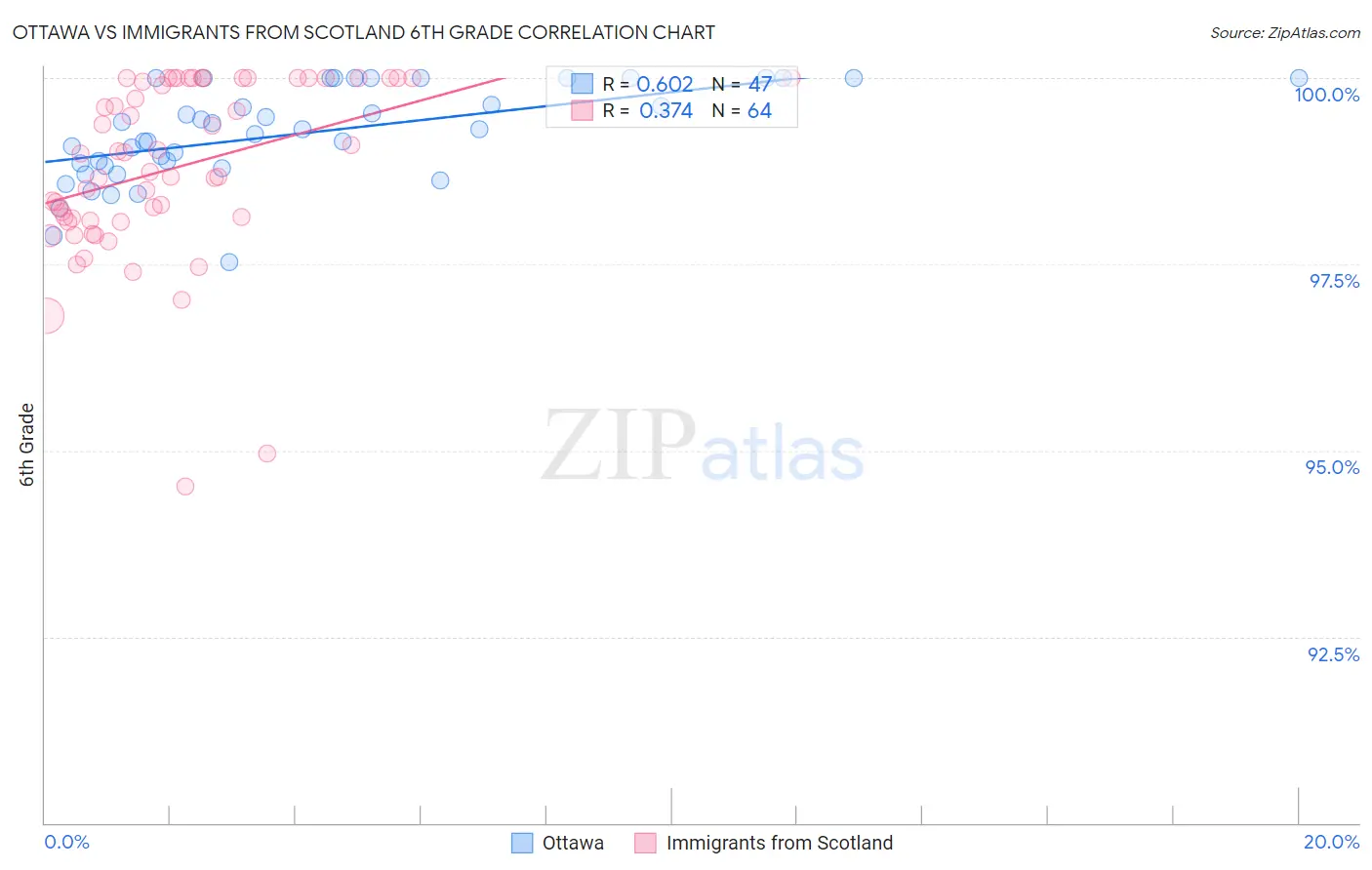 Ottawa vs Immigrants from Scotland 6th Grade Correlation Chart