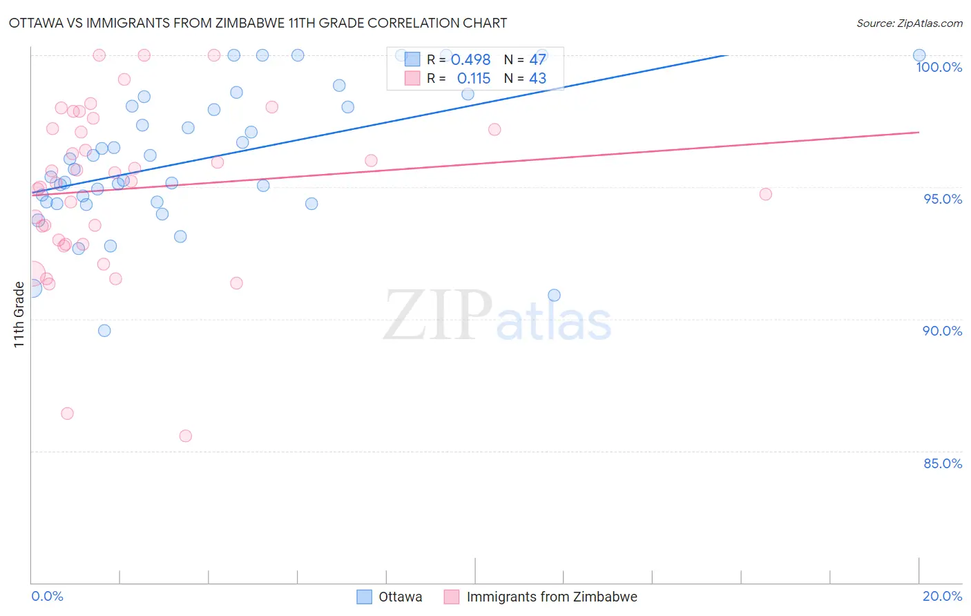 Ottawa vs Immigrants from Zimbabwe 11th Grade Correlation Chart