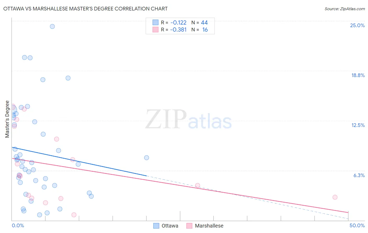 Ottawa vs Marshallese Master's Degree Correlation Chart