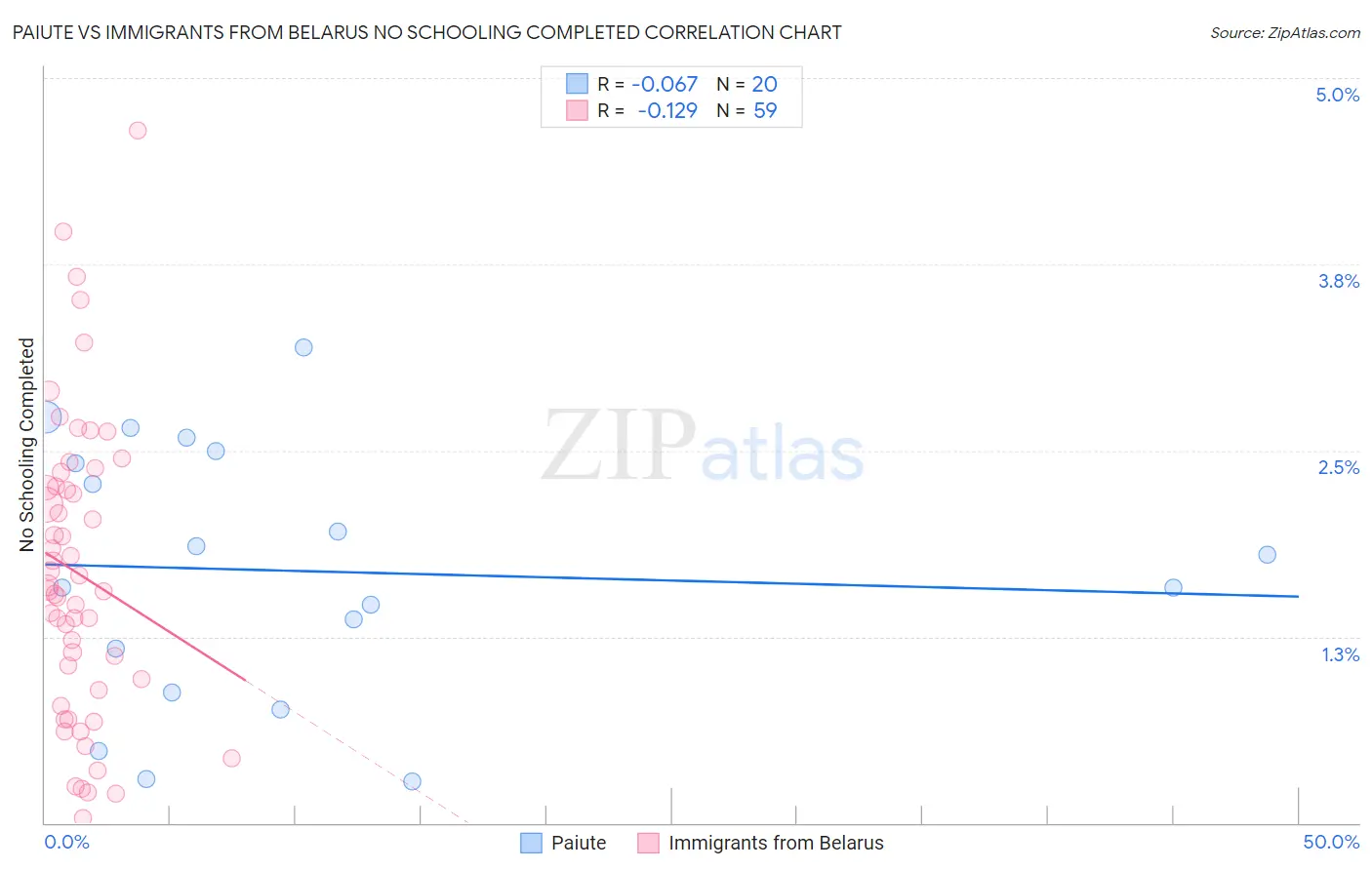 Paiute vs Immigrants from Belarus No Schooling Completed