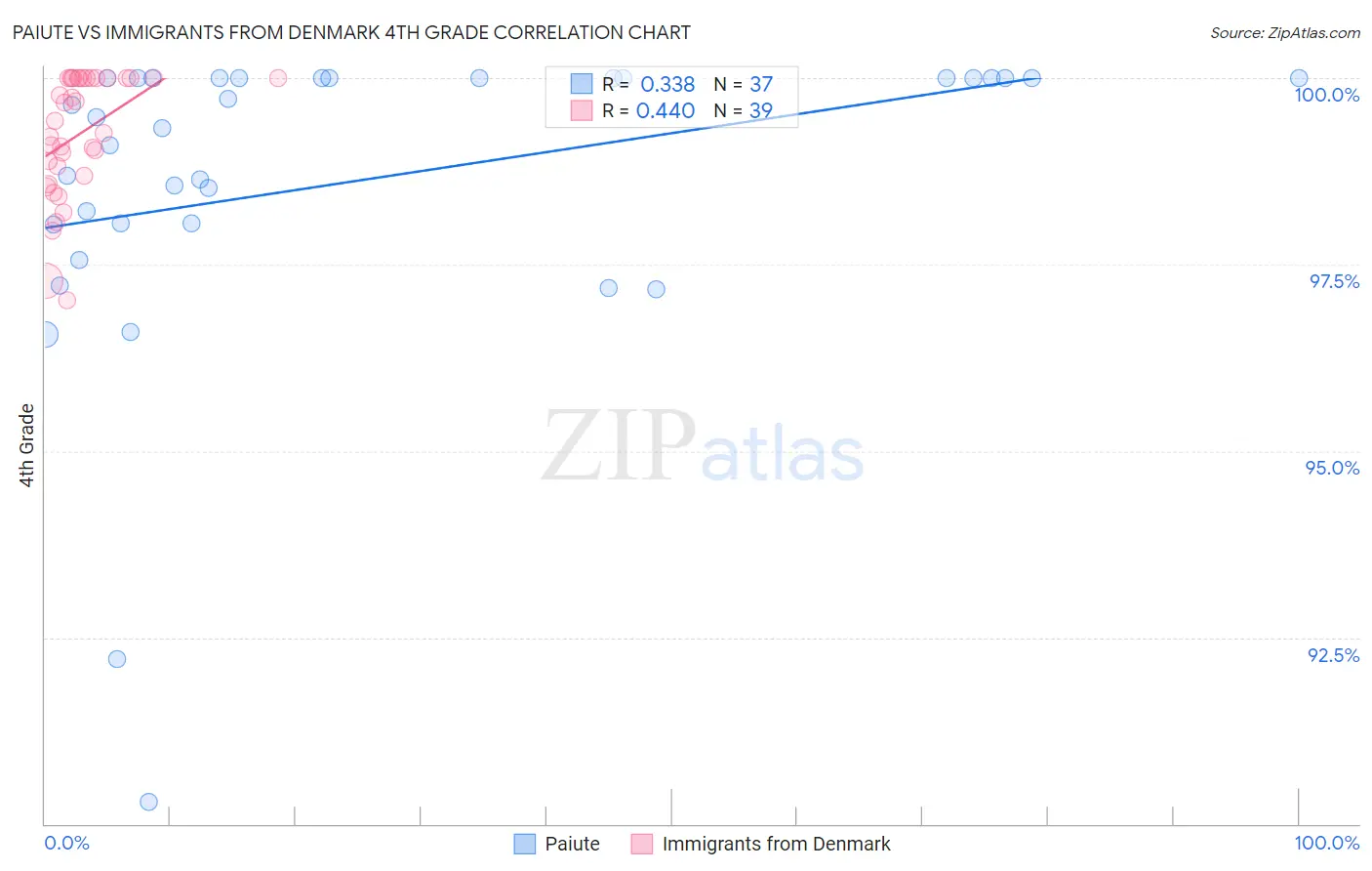 Paiute vs Immigrants from Denmark 4th Grade Correlation Chart